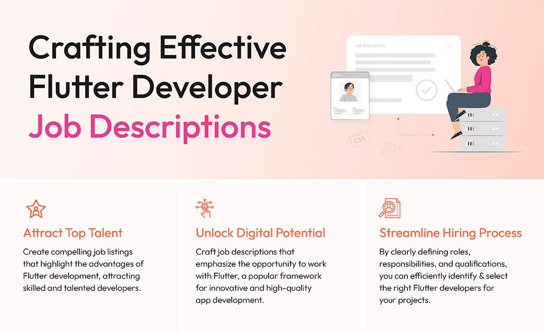 Companies should emphasize the advantages of hiring Flutter developers in their job descriptions. Flutter developers play a crucial role in driving innovation, accelerating app development cycles, and ensuring cross-platform compatibility. They are responsible for translating UI/UX designs into functional apps, implementing robust testing strategies, troubleshooting issues, and collaborating with designers, product managers, and backend developers.