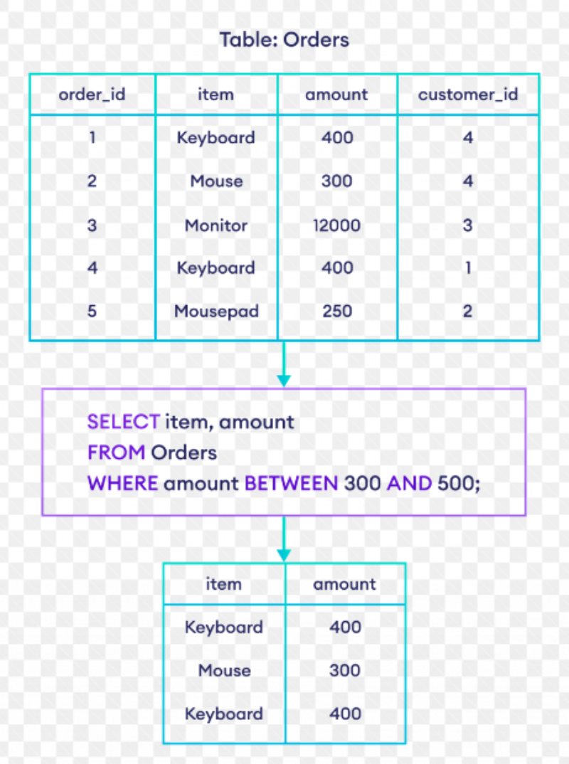 with the WHERE clause to filter data based on a specified range. Additionally, the SQL